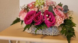 フラワーアレンジメントとは、器に吸水性のあるスポンジを入れ、そこにお花を挿して飾り付けるものです。